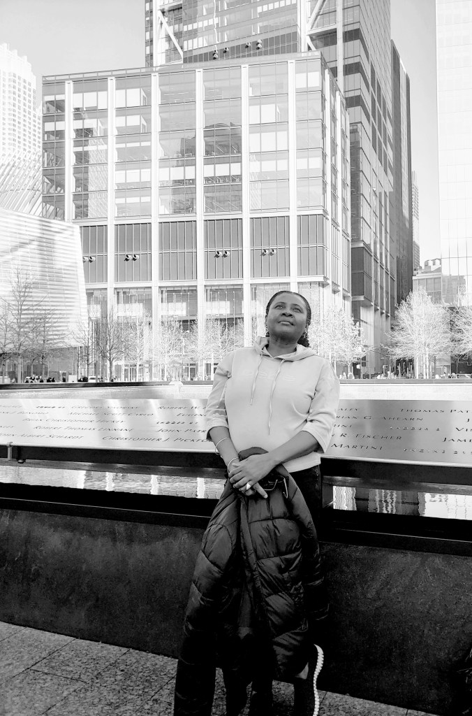 How quickly we can forget! This spot brings back memories of summers when different artists would play music from a variety of genres in front of the Twin Towers. The days I would visit the 23rd floor to hang out. Those days are gone. The names imprinted on that memorial pool behind me – represents those who are no longer with us. Some had walked those streets for the last time on 9-11-2001. I still get to do this 22 years later. I don’t ever take that for granted. I am still in awe of those high-rise buildings that tower over us mere humans. Having worked in a few of them, the view can be stunning especially at nights. I almost forgot how they make you feel.