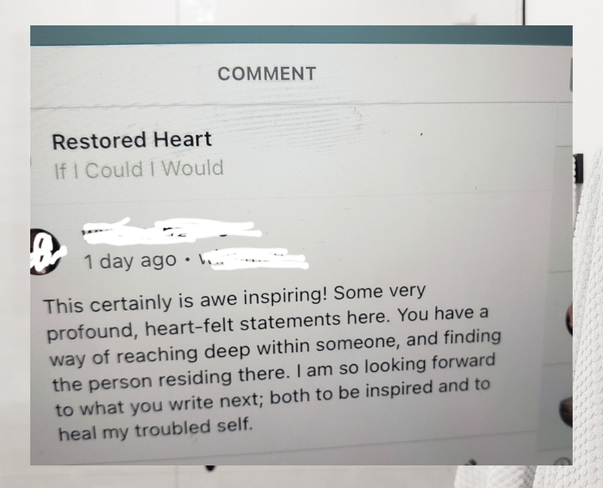 Today I glanced at this comment made awhile back by one of my readers. Something came alive in me—even in my state of weariness. So, I continue to write. Can I encourage my weary friends? You cannot afford to quit. To dim your shine. Step back for a minute and breathe. Go back and read some of what you wrote on those ‘better’ days. Open your memorial closet and rehearse your moments of grace and favor. Recount the times someone was inspired by your words. Remember someone still needs to hear what you have to say. Again, your words matter —your voice matters. Come back to where you belong. Never leave your seat at the table empty. Come back to purpose.