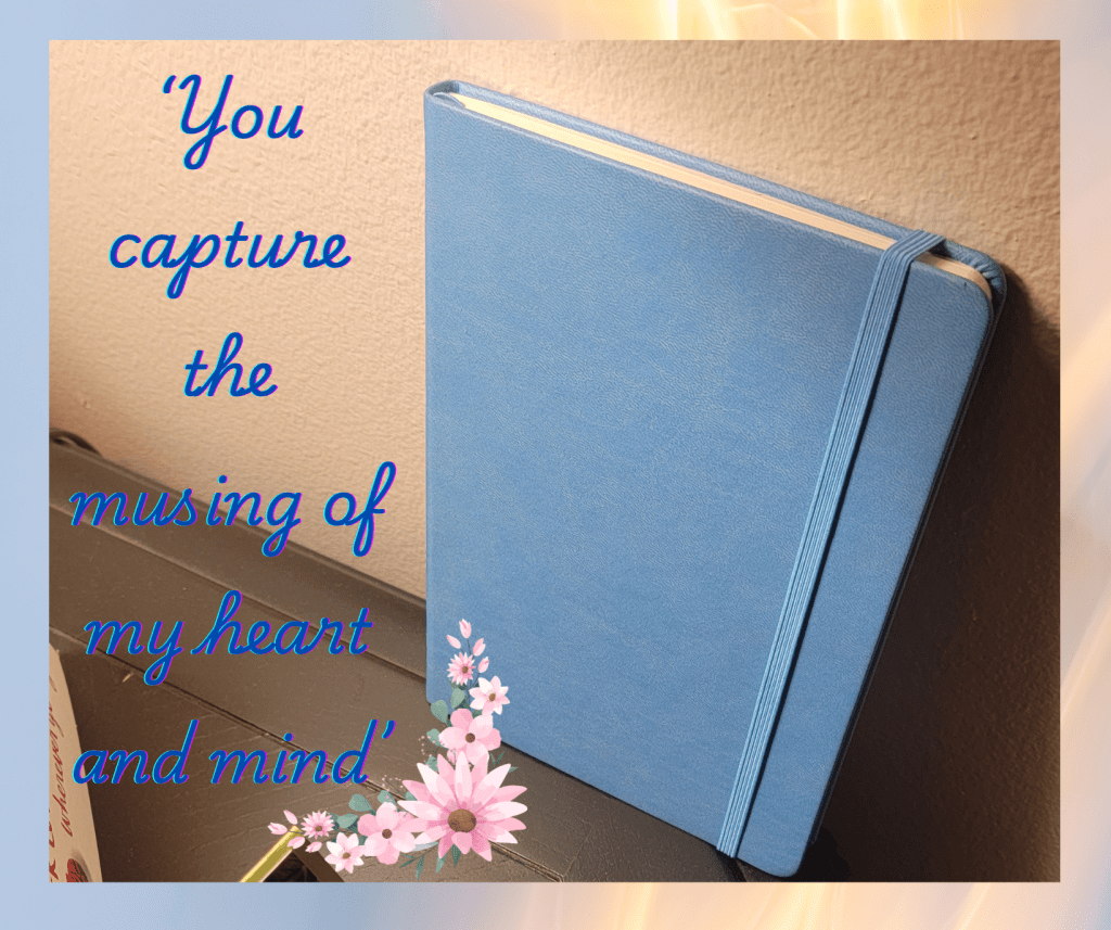 Isn’t it funny how the meditations of our hearts and mind can hold us captive at the most unlikely moments? I find that my car is often my space – my creative room. I have started keeping this little blue book beside me as a constant companion. Sometimes I need to capture it all in ink. While sitting at a traffic light or stuck in traffic I find those few minutes to journal. It’s becoming quite easy to forget as the minutes all roll into one on my increasingly busy days. My blue book has recently become my new confidant. Here’s something we mused about this past week:
